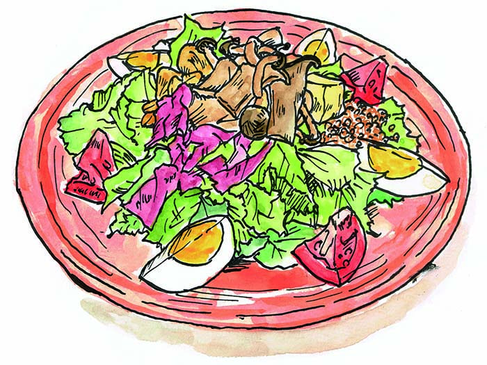 「きのこと鶏肉の秋パワーサラダ(699円(税抜))」は、きのこ、鶏肉、木の実などの食材が盛りだくさんのパワーサラダです。彩り鮮やかで、見た目にもおいしいサラダを、ぜひお召し上がりください。